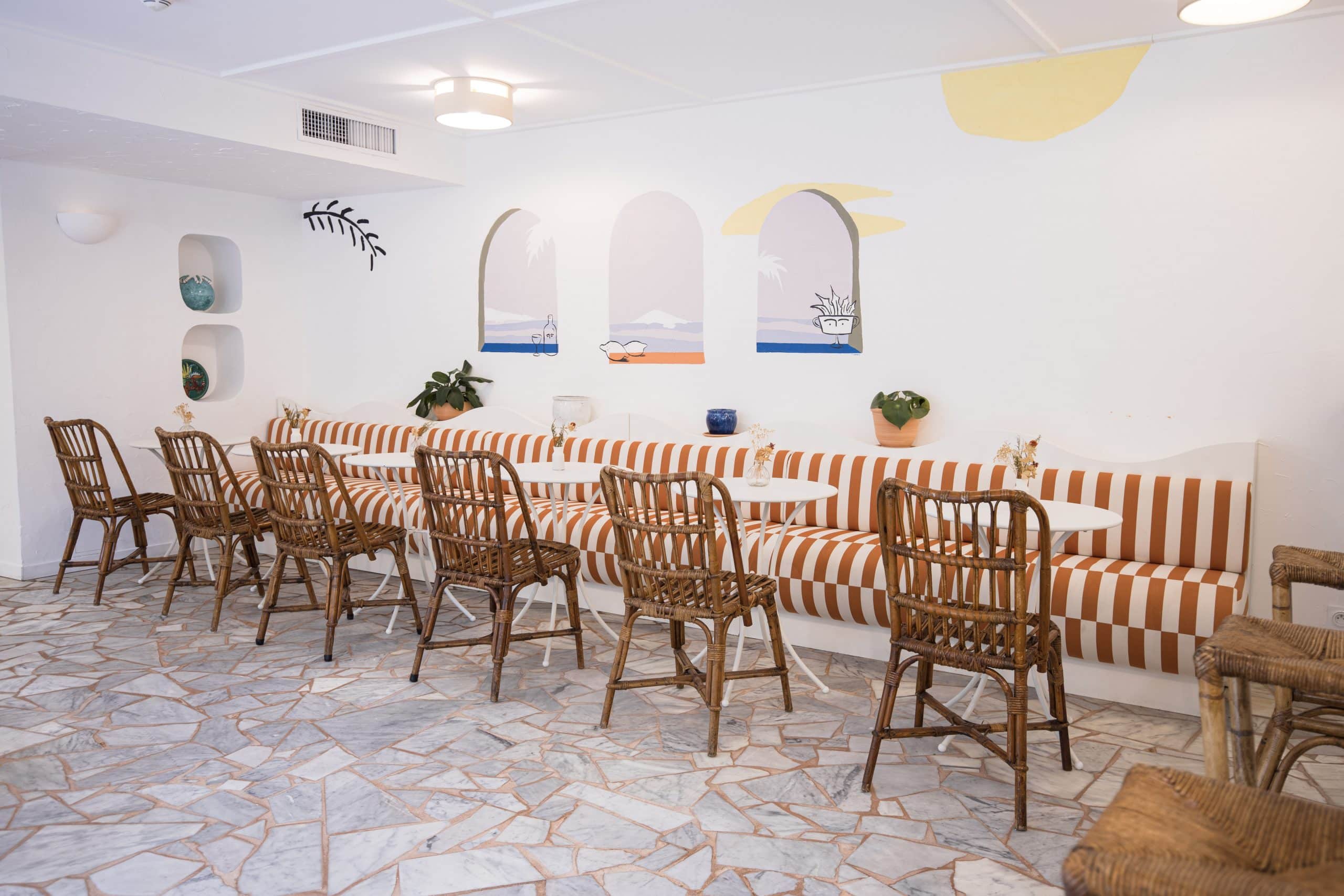 Pour imaginer l’Hôtel Le Sud de 29 chambres, l’architecte d’intérieur Stéphanie Lizée s’est laissée imprégner de la richesse esthétique de la région, marquée par des artistes comme Picasso, Fernand Léger ou Jean Cocteau. Au détour des murs talochés, des touches de grès, de terre cuite et de rotin servent de décor à des objets chinés dans le coin ou à du mobilier dessiné sur mesure, réalisé la plupart du temps par des artisans locaux. Non loin de la plage, les clients peuvent en outre profiter du calme de la grande terrasse et du jardin avec piscine.