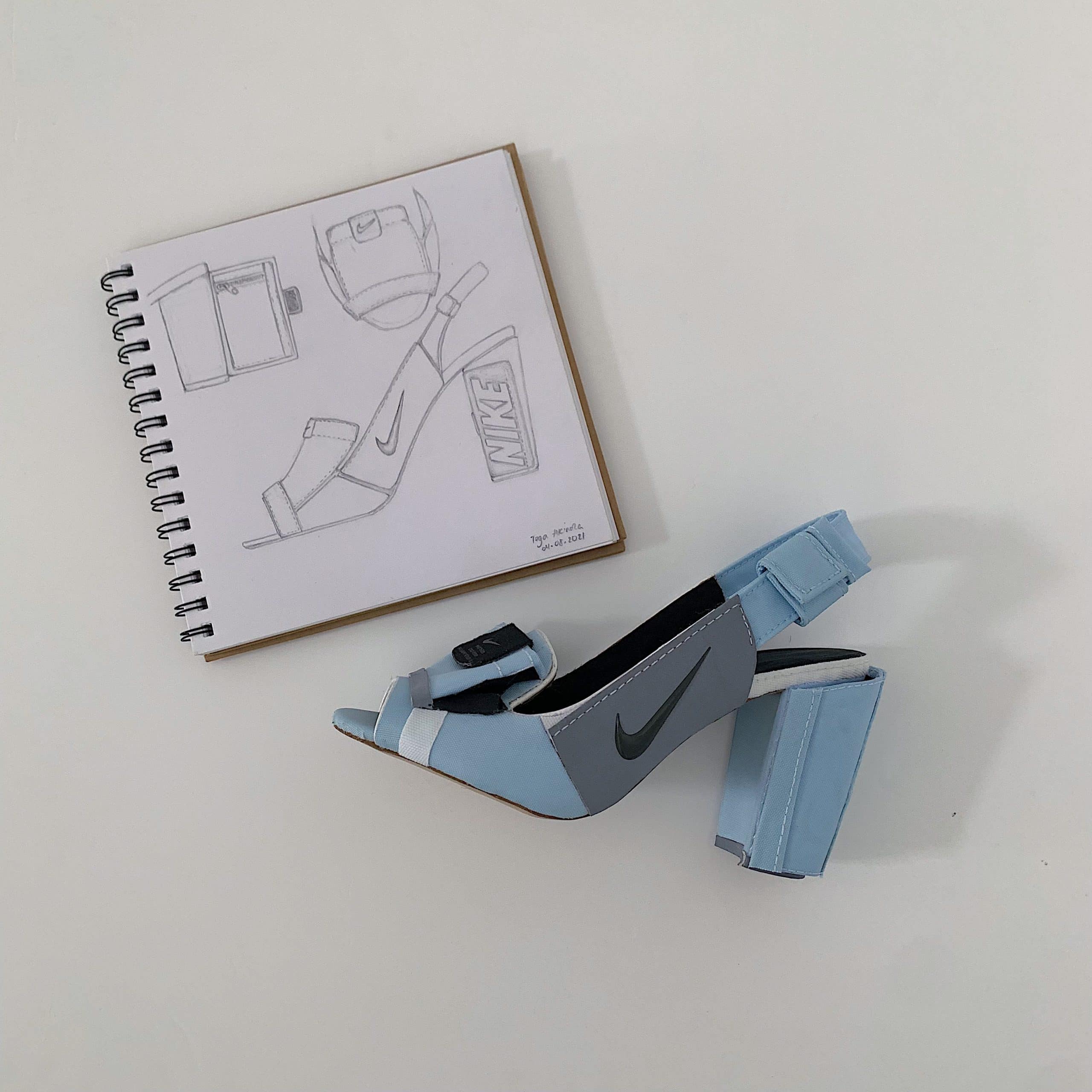 Tega Akinola, créatrice nigériane et britannique, dont la notoriété a été décuplée sur les réseaux sociaux, est une de ces artistes révélés par le confinement. Alors qu’elle retrouve le foyer de ses parents pendant la pandémie, elle découvre dans un sac des câbles de chargeurs de téléphone en quantité. Au lieu de les jeter, elle commence alors une fantastique série d’objets upcyclés sur lesquels elle applique les fameux câbles : chaussures, chapeaux, sacs. Parmi ses autres chefs-d’œuvre, on compte ses chaussures à talons habillées de chaussettes de sport ou ses sacs à main ornés de polaires Patagonia. Enfin, lors de l’exposition « Sneakers Unboxed », qui s’est tenue au Design Museum de Londres, la jeune créatrice a présenté une étonnante paire de talons, faite à partir d’un sac de sport Nike. Ingénieux, responsable et très désirable, le design de Tega Akinola fait écho à une jeune vague de créateurs en phase avec les enjeux de la mode de demain.