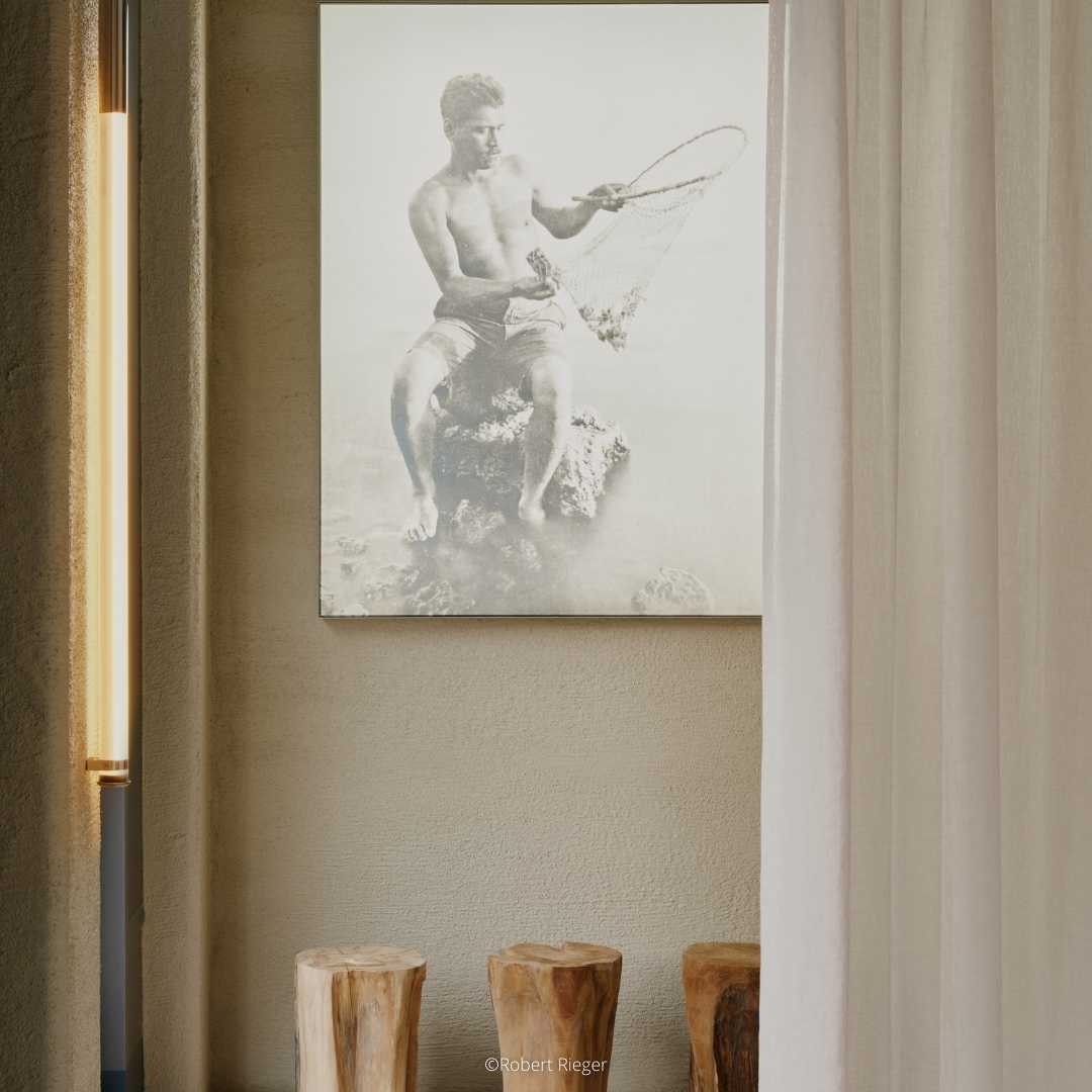 Quand on s’arrête devant la devanture de Jigi Poke, difficile de comprendre qu’il s’agit d’un restaurant de poke bowls tant l’ambiance monochrome et intimiste peut surprendre. Aux antipodes des motifs floraux et chamarrés typiques de la décoration des restaurants hawaïens, ce lieu branché de Berlin a opté pour un intérieur brutaliste et sculptural. À l’image de la photographie originale d’un pêcheur du début du siècle qui orne le mur en béton, le cabinet d’architecture Vaust Studio a créé des tabourets en granit et des souches de bois en guise d’assises. Des teintes naturelles et terreuses qui laissent les couleurs vives des assiettes libres d’exploser de tout leur éclat !