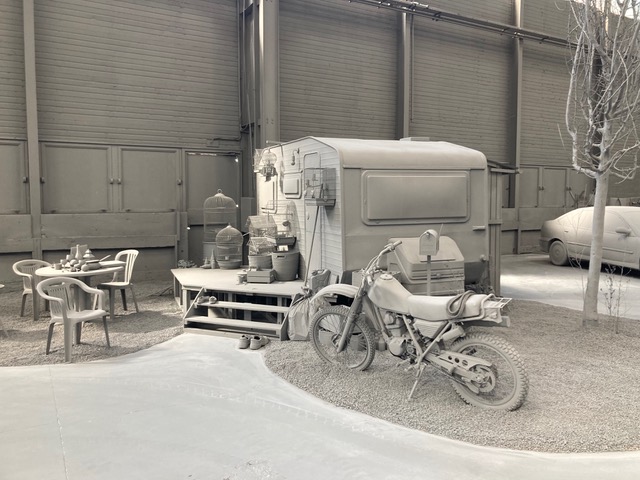 Como los retratos monocromos de Giulia Andreani y los mundos enterrados de Hans Op de Beeck. Compuestos a partir de fotografías antiguas o capturas de pantalla de películas y documentales, los retratos grises de Payne de Giulia Andreani (nacida en 1985 en Venecia) evocan el borrado de la memoria, “historias olvidadas, relatos enterrados”. Lo mismo ocurre con la gigantesca instalación inmersiva We were the last to stay, de Hans Op de Beeck (nacido en 1969 en Bélgica), que parece una ciudad fantasma. Como un gigantesco memento mori, este campamento abandonado y congelado en una masa de pintura gris nos recuerda el irremediable paso del tiempo y la vanidad de la existencia humana (“Del polvo vienen y en polvo te convertirás…”).