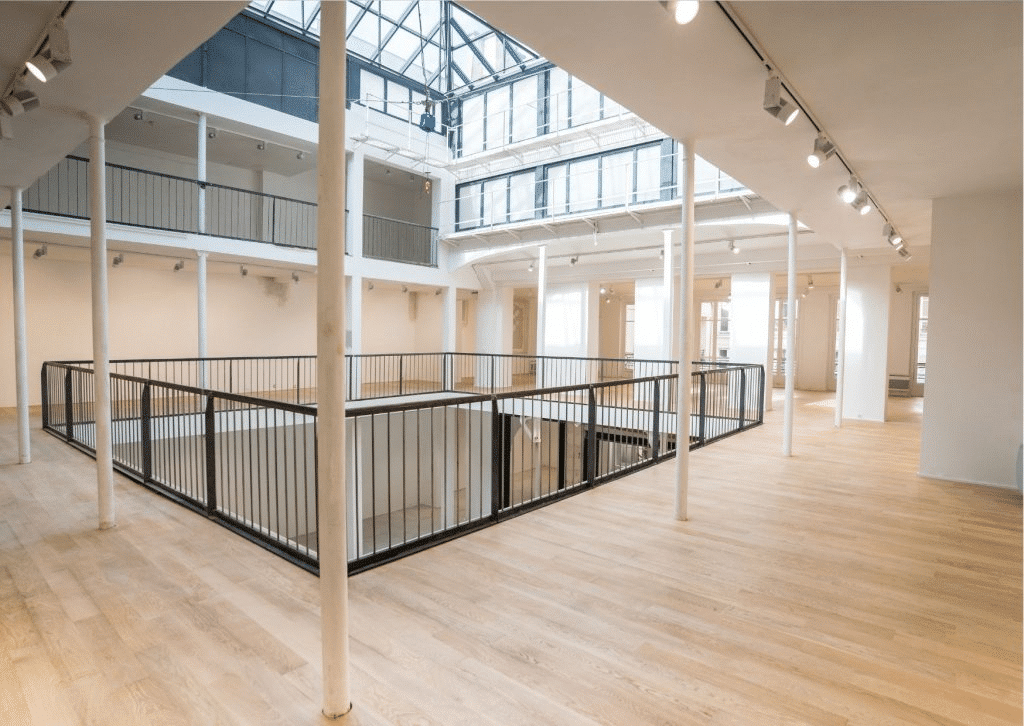 Au 5 rue Saint-Merri, se trouve un espace exceptionnel de 1200 m2. Anciennement le Musée Pierre Cardin, cet endroit se baigne de lumière grâce à son immense verrière. Sa hauteur de 15 mètres, couvre 120 m2 et les trois niveaux ouverts sur l’atrium. Ils permettent des scénographies extrêmement variées. Cet espace est parfaitement adapté aux showrooms, séminaires et expositions d’art, grâce à ses espaces modulables et lumineux, et sa hauteur sous plafond comprise entre 3,5 et 4 mètres. Il est également équipé d’un véritable atelier de restauration et de tout le matériel nécessaire à l’organisation de conférences.