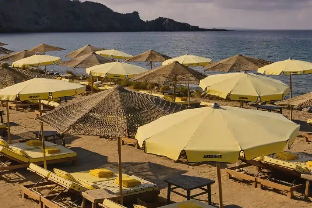 Ibiza, avec ses criques préservées et sa scène artistique, devient un terrain d’expérimentation. Jacquemus y installe un univers solaire sur la plage de Cala Jondal, au sud de l’île, fréquentée par la jet-set et les yachts, entièrement habillé de jaune, avec boutique, parasols et transats signés. Dior, fidèle à son rendez-vous estival depuis 2019, déploie sa ligne Dioriviera dans une scénographie inspirée des paysages méditerranéens, souvent sur les plages d’Es Cavallet ou de Las Salinas, prisées pour leur nature sauvage. À quelques kilomètres, le confidentiel Malaquita Hotel accueille une boutique-piscine signée Malin+Goetz.