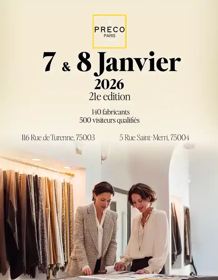 La nouvelle édition de Preco 2026, programmée les 7 et 8 janvier en plein cœur du Marais, annonce une montée en puissance notable. Réunissant 140 fabricants internationaux et plus de 500 visiteurs qualifiés, le salon offre un environnement propice à la découverte, à l’échange et à l’analyse approfondie des futures tendances. Les milliers de références textiles présentées permettent aux professionnels d’affiner leurs impulsions créatives et d’anticiper les besoins des saisons à venir.